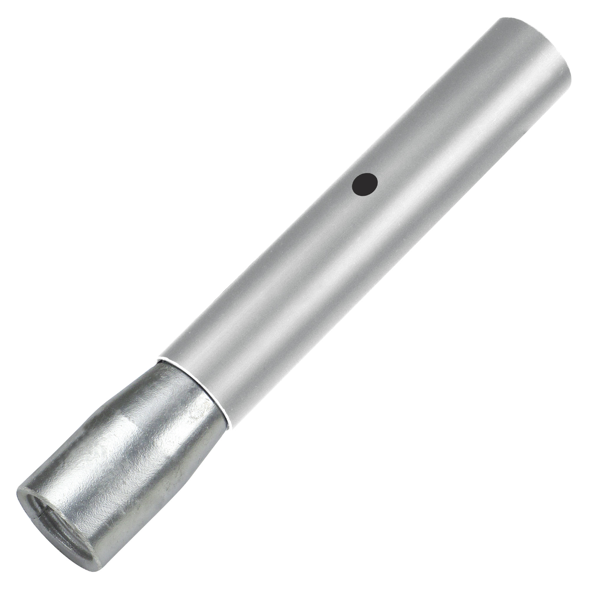 Expand the use of your tools with this adapter! All your concrete tools can use the same threaded bull float handle with this adapter. This tool allows finishers to use threaded handles with button bull float bracket assemblies. Or combine lightweight 1-3/8" diameter button bull float handle with thread handles. A strong female threaded end creates a strong attachment to other threaded handles. The threaded end is secured to a lightweight durable aluminum tube with holes to accept button bull float handles or brackets. The threaded end is molded cast aluminum for a strength and consistency in threads.