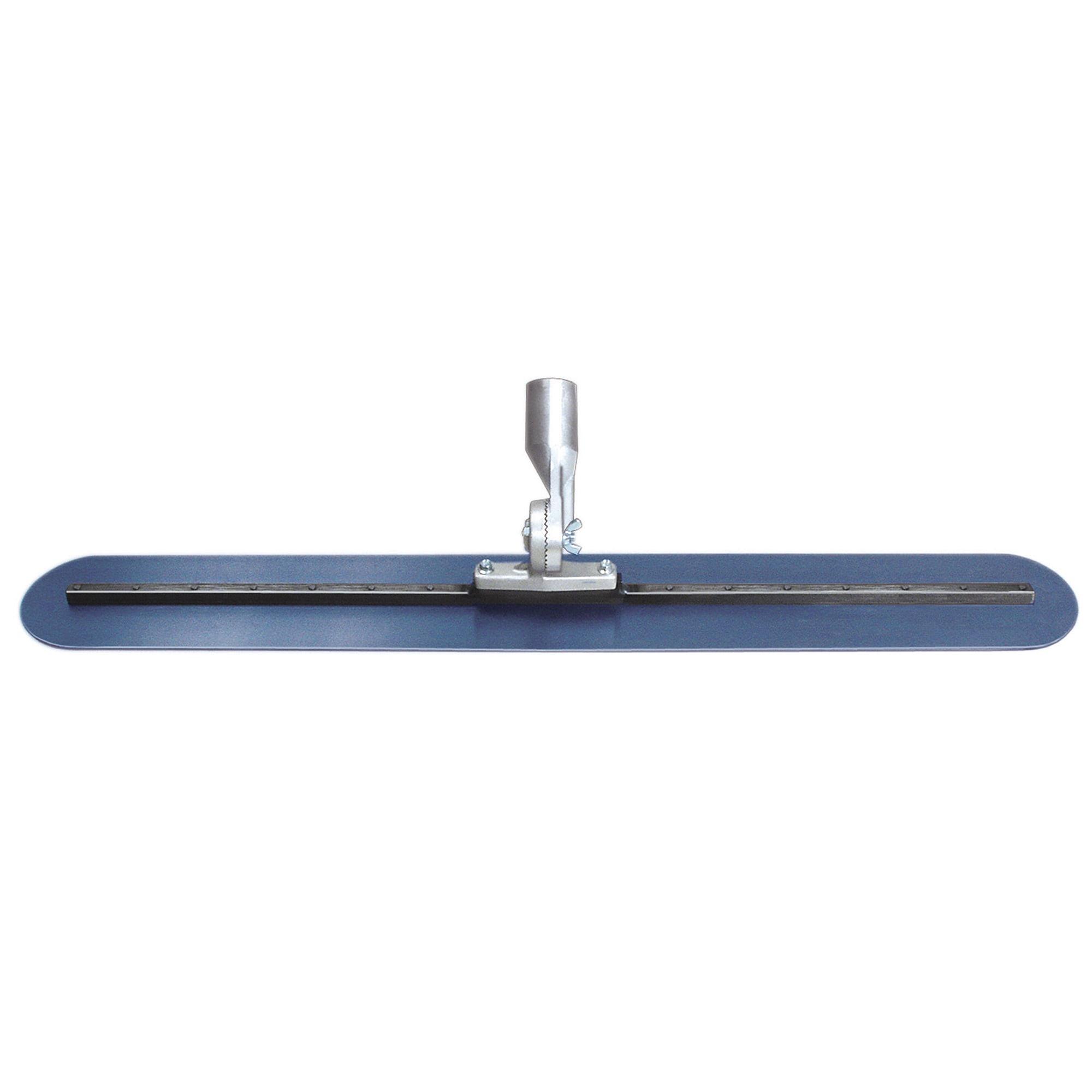 This 3' fresno trowel is made with high quality, flexible blue steel for a perfect finish. Use this quality fresno to finish concrete to a smooth, hard surface. Round ends on the 5" blade eliminate gouging of concrete for a smooth finish. A 33" long 1/2" square steel mounting is centered on the 36" blade to help keep the trowel flat. A strong cast aluminum bracket is attached to the fresno. Uniquely designed bracket has teeth to keep handle at set angle without slippage. Single tilt bracket moves handle 180 degrees for back and forth movements. Use with threaded bull float handle. Other 2-hole fresno brackets can be used, if desired. Attach one or more groover bits (sold separately) to turn this tool into a groover for more versatility.