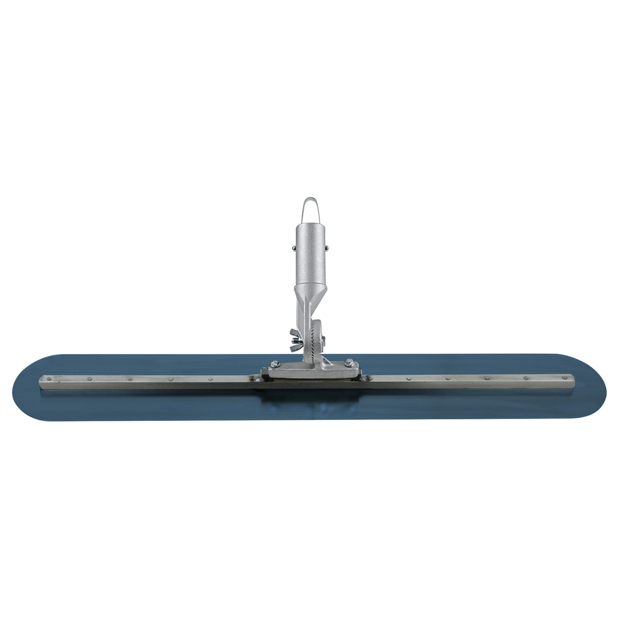 This 3' fresno trowel is made with high quality, flexible blue steel for a perfect finish. Use this quality fresno to finish concrete to a smooth, hard surface. Round ends on the 5" blade eliminate gouging of concrete for a smooth finish. A 33" long 1/2" square steel mounting is centered on the 36" blade to help keep the trowel flat. A strong cast aluminum bracket is attached to the fresno. Uniquely designed bracket has teeth to keep handle at set angle without slippage. Single tilt bracket moves handle 180 degrees for back and forth movements. Use with 1-3/8" or 1-3/4" button bull float handle. Other 2-hole fresno brackets can be used, if desired. Attach one or more groover bits (sold separately) to turn this tool into a groover for more versatility.