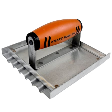 The 6" long heavy-duty stainless steel blade moves smoothly through concrete driveway and sidewalks. This groover creates six 1/4" deep grooves 3/4" apart on center. These parallel lines provide a safety tread effect on high traffic areas such as driveways, sidewalks and stairs. The 5-1/2" wide tool provides thorough coverage on sidewalks, driveways, and slabs. The edges of the tool are turned up to prevent build-up on the tool. A full top-plate provides additional strength to move through the cement with ease. A steel mounting welded to the top plate attaches the ProForm® soft grip handle. The enhanced texture on the handle reduces fatigue and provides a great grip even when wet. The signature orange and black handle is easy to find on a jobsite.